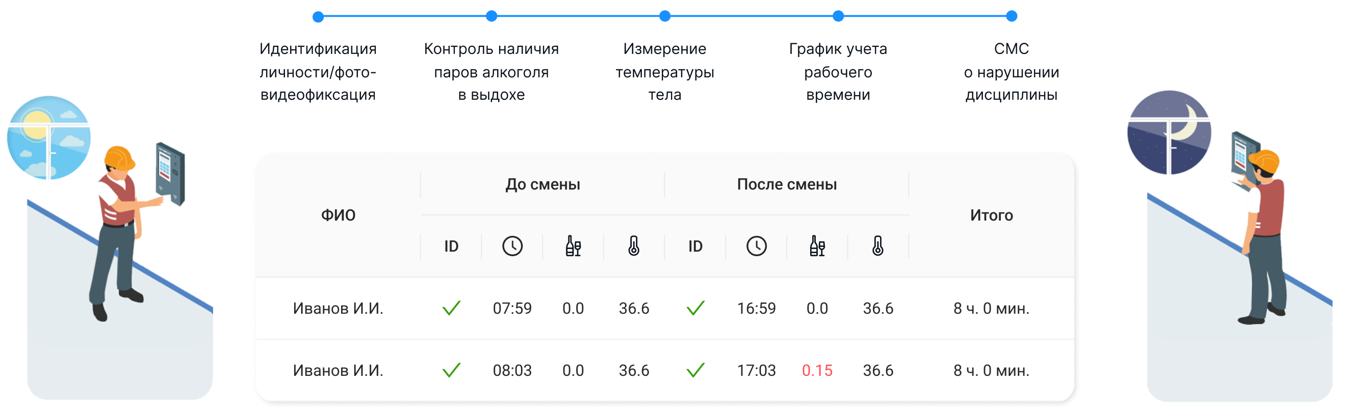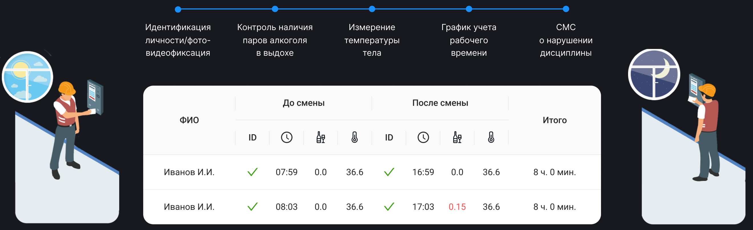 - функционал проведения предрейсовых, предсменных, послерейсовых, послесменных осмотров для медицинского работника