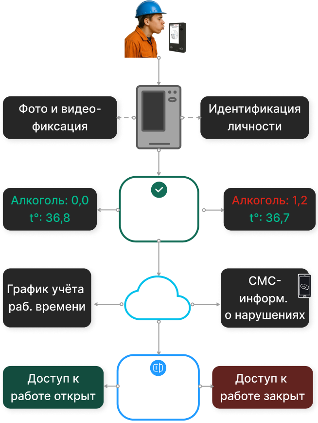 - автоматическая рассылка по результатам недопусков: e-mail-уведомления, SMS-оповещения, Push-сообщения в мессенджере (Telegram)